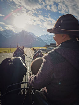 Gemütliche Ausfahrt mit der Doppelspänner Pferdekutsche - grandioser Ausblick ins Tal und auf die Berge inklusive.